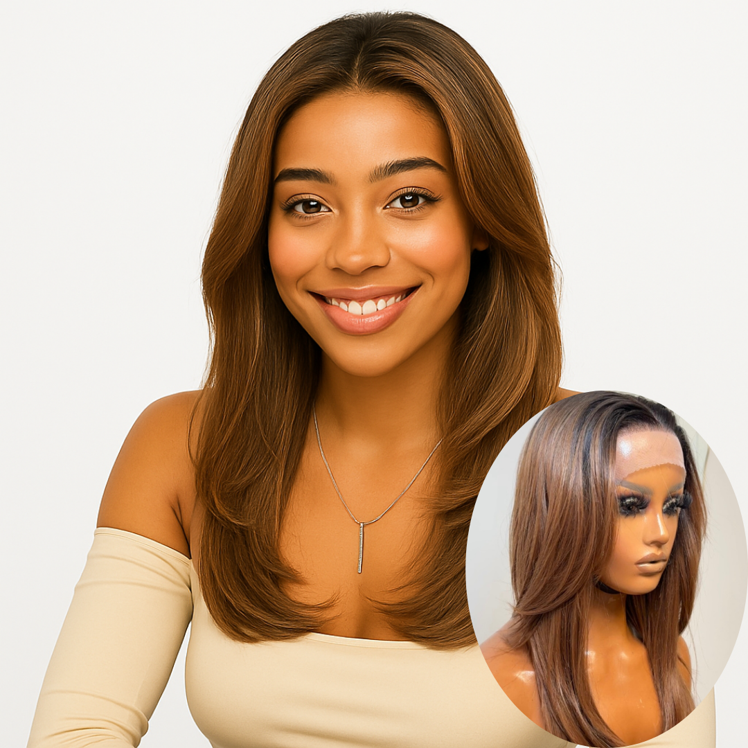 UCHE 6 X 6 BROWN WAVY GLUELESS WIG